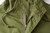 撥水加工が施されたモッズコート。季節の変わり目に便利な軽めタイプです。