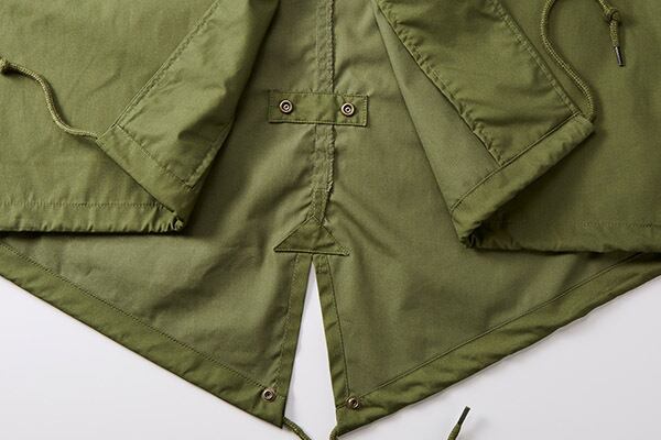 後裾部分はボタンを留めれば収納可能なのでスタイリッシュにも着こなせます。